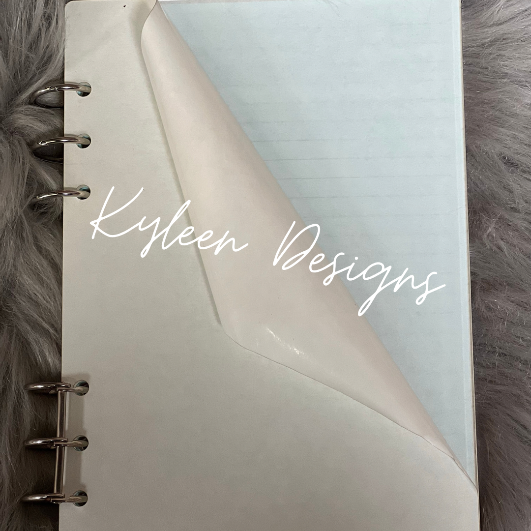 A5 1/8 clear cast acrylic 3 hole notebook, will come masked. You will have to peel off paper. You can glitter and epoxy, sublimate (please do your research on this before attempting, acrylic does warp under extreme heat)